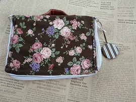 茶色にローズが散らばった柄の生地に白いリボンをかけました。
