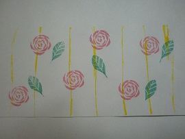 画用紙にバラのイラスト濃いめの鉛筆で描いて、消しゴムを押し付け転写します。