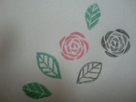 バラ柄&葉っぱ柄ハンコが出来たので、次は帆布に押してバックにするぞ☆
