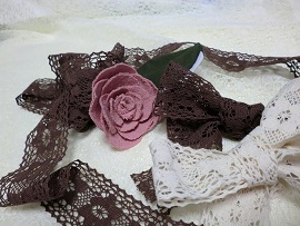 ガーリーシュシュ リボン小花と生成のレース