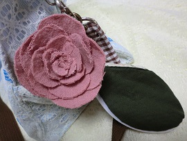 今日はオールドローズのコサージュとリーフキーケースです。