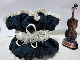 シュシュの両端には生成りのストレッチレースがついています。
