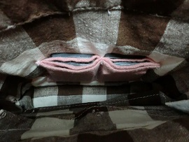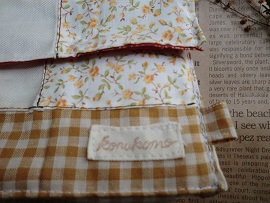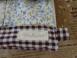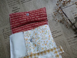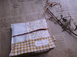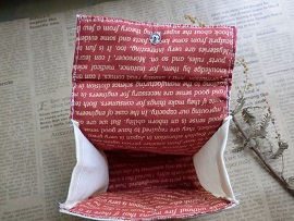 私の作り方だと蓋の端や底の端に内側の布が外側に少し出て模様になります。