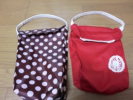一通り目 赤いバックの内側は撥水加工をしてある水玉の布地です。