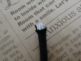 パラシュートコードはご覧のとおり一番外の黒い部分と中の白い部分で出来ています。