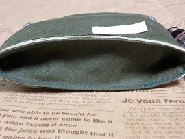 私の作り方だと蓋の端や底の端に内側の布が外側に少し出て模様になります。